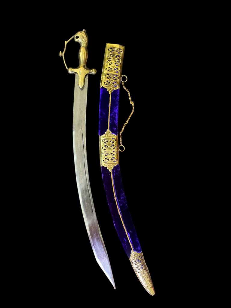 BLUE VELVET SHEET ON SCABBARD WITH BRASS WORK